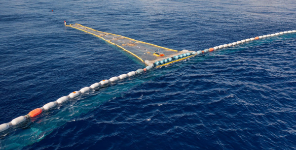 ํํ์ ์ฐ๋ ๊ธฐ ์ฌ์ด๋ผ ๋ถ๋ฆฌ๋ ๊ณณ์ ์ค์นํ ํด์์ฐ๋ ๊ธฐ ์๊ฑฐ ๊ทธ๋ฌผ๋ง(์ถ์ฒ: The Ocean Cleanup, 2023)